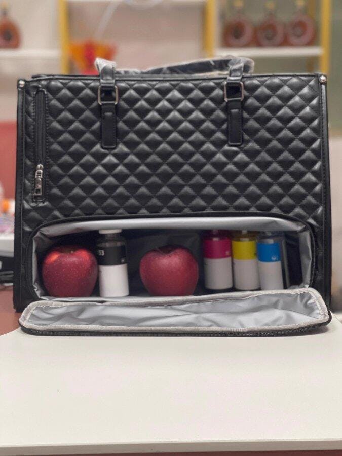 Stay stylish and organized wherever you go with this multi-functional insulated tote bag!